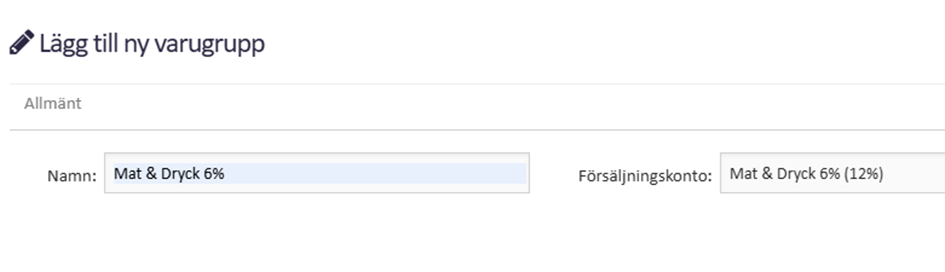 - I detta fall benämns varugruppsnamnet samma som försäljningskontot, men ni sätter er egen namnstandard.